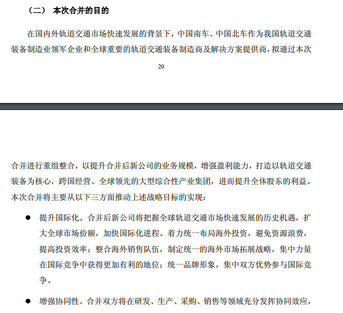 以下是公告中提到合并的目的,增强协同,提升国际化,提升合并后新公司业务规模,跨国经营,打造全球领先的产业集团,提高海外竞争力。