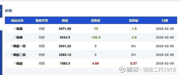 1、磷肥2025年销售量127.73万吨,均价3071元,收入39亿元,假设2026年一季度销售量和2025年一样,127.73万吨有80%产能是磷酸二胺,剩下的20%是磷酸一铵,磷酸二铵2026年1月份售价4100元,2月6日磷酸一铵报价3871元,硫磺报价3800