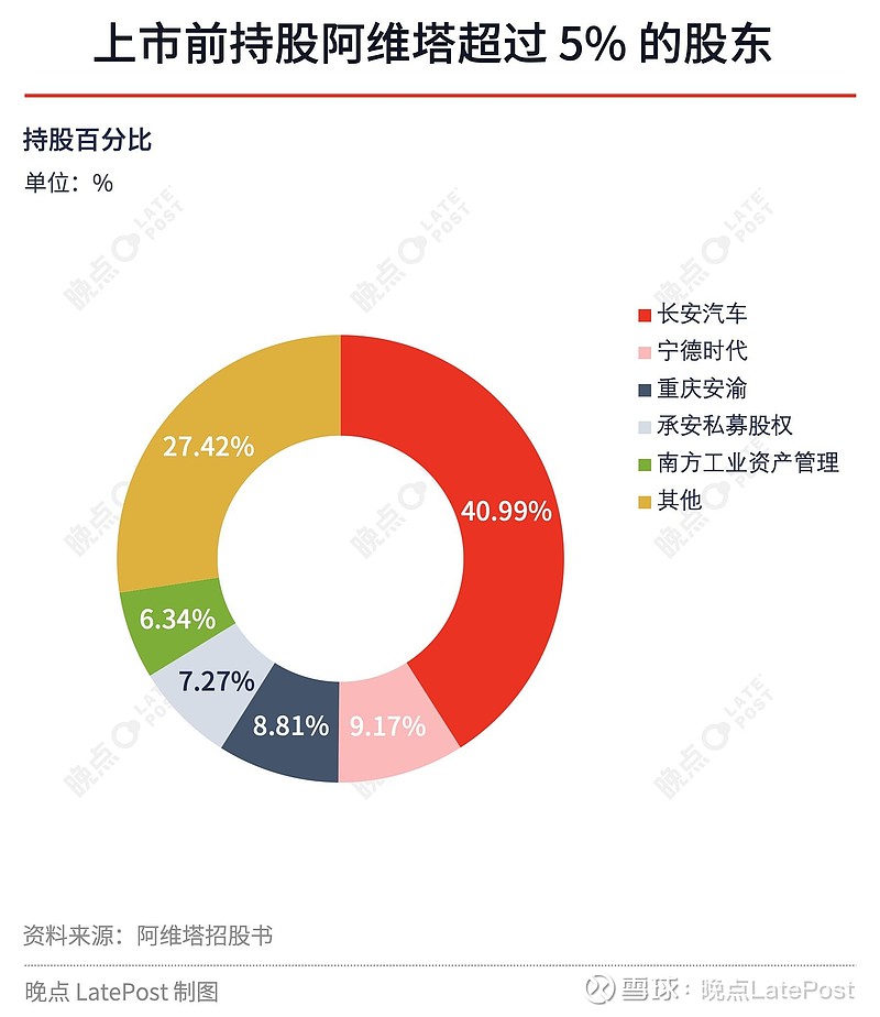 阿维塔第一、第二大股东分别是长安汽车、宁德时代,重庆国资委也是重要股东。华为虽未入股,但和长安汽车合作密切。华为智能汽车解决方案 BU CEO 靳玉志曾表示,“长安汽车在华为汽车 PPT 阶段就选择了华为。”