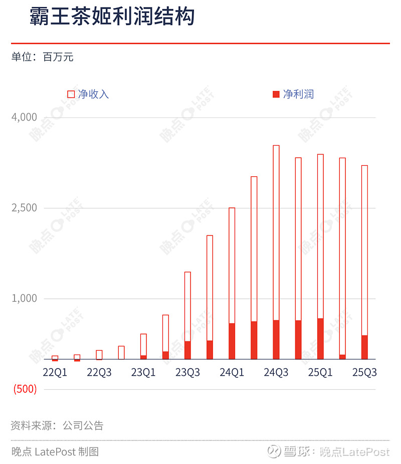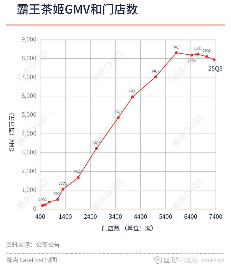 · 这个季度霸王茶姬净新增门店 300 家,增速同比为 -64%,总门店数为 7338 家;