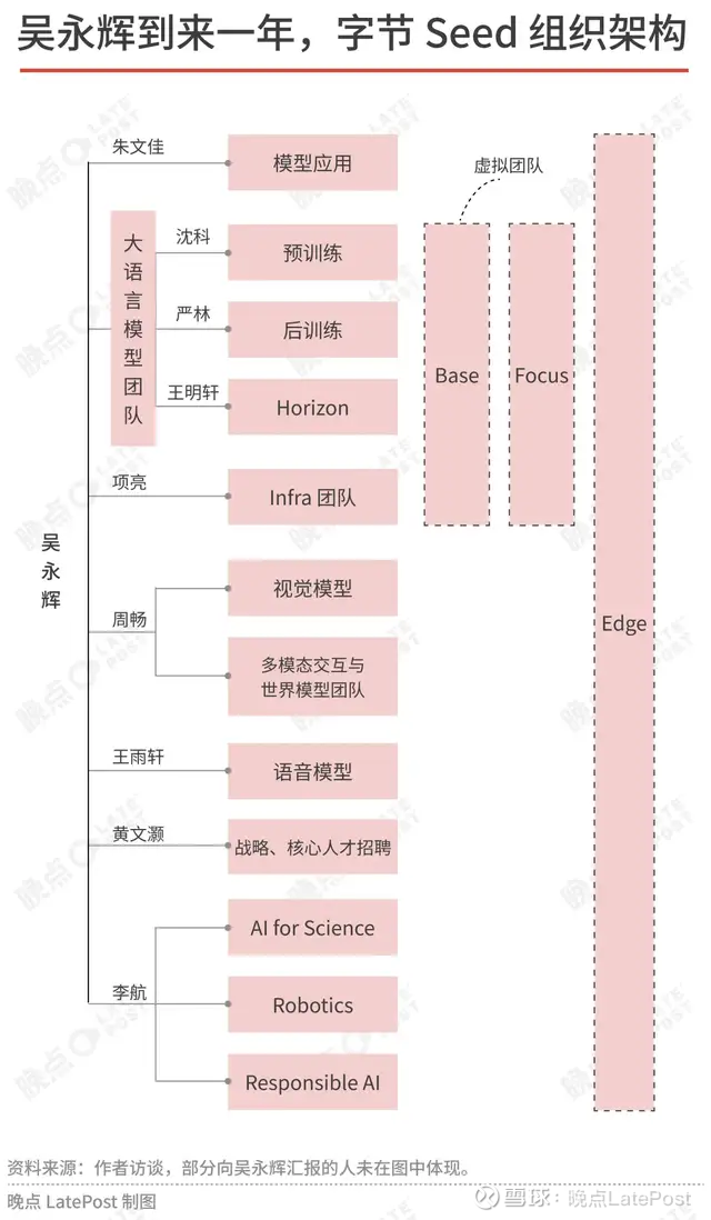 两位 Seed 人士说,在吴永辉的规划中,可以同时推进三代模型研发,人员、课题都可以相互轮换,同时盘活内部的资源,“Edge 有了成果可以直接下放;Focus 发现长期课题可以转入 Edge,有了成果可以用于改进当前一代模型。”
