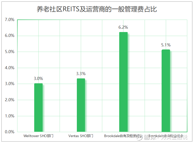 图2.5 养老社区REITS及运营商的一般管理费占比