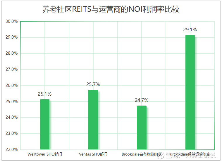 图2.4 养老社区REITS与运营商的NOI利润率比较