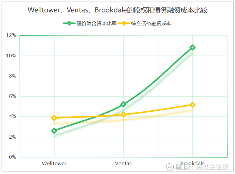 图2.10 Welltower、Ventas、Brookdale的股权和债务融资成本比较