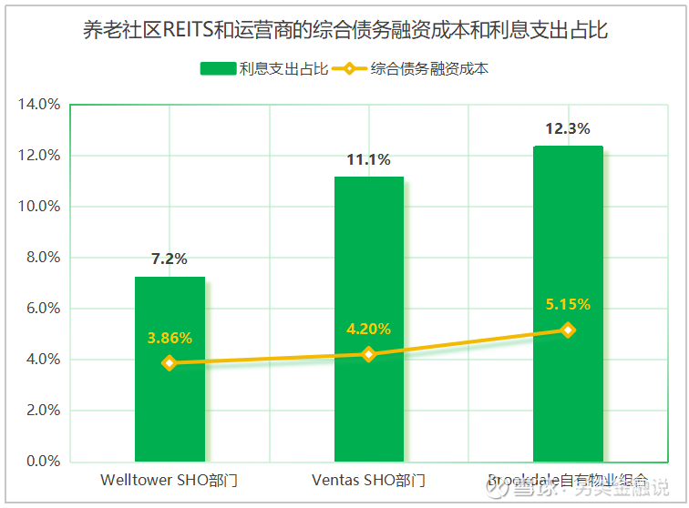 图2.6 养老社区REITS和运营商的综合债务融资成本和利息支出占比