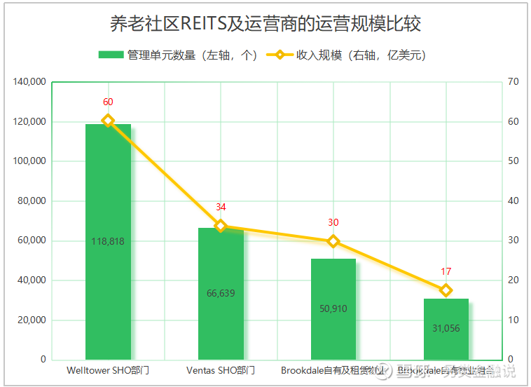 图2.1 养老社区REITS及运营商的运营规模比较