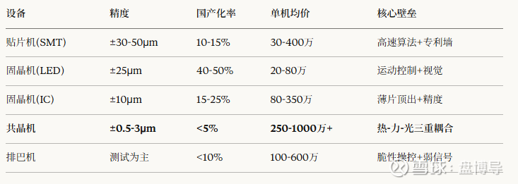2. 国产替代路径已验证 新益昌在LED固晶机打了个样:从LED(±25μm)→ IC(±10μm)→ 先进封装(±5μm),技术迁移路径清晰可复制。易天收购微组半导体,就是想在共晶机赛道复刻这条路。