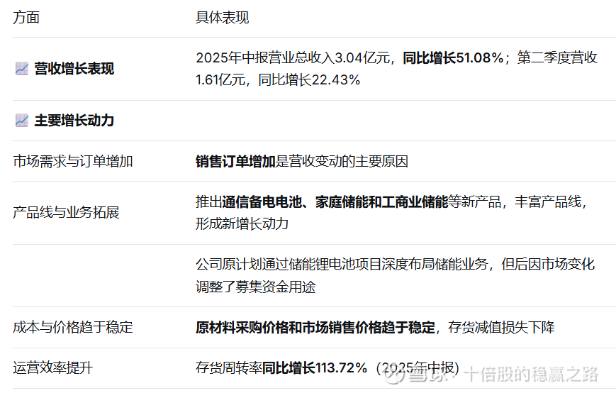 2025年中报显示营收显著增长:公司营业总收入为3.04亿元,同比增长51.08%;第二季度营收1.61亿元,同比增长22.43%。增长主要源于销售订单增加。