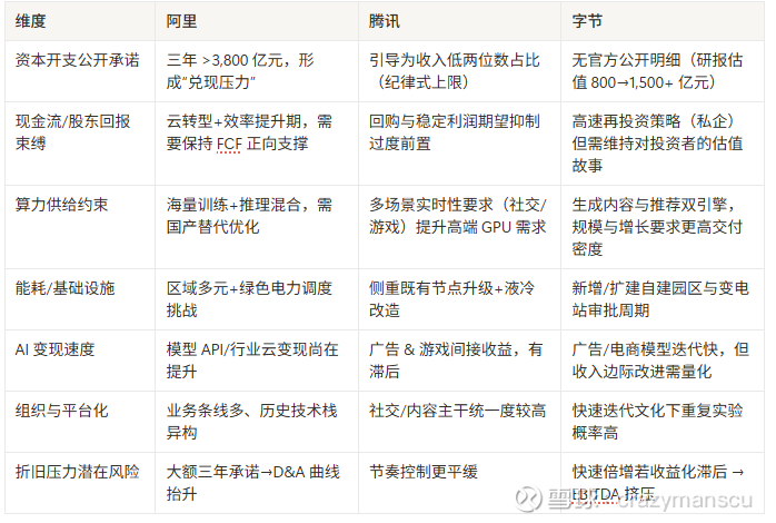 而中国的阿里、字节、腾讯三家巨头,从2024年Q3Q4才开始增加AI基础设施投入,2025年加起来还不到4000亿人民币。虽然目前各家公司都有各种理由限制资本开支的比例,但是,难道中国的AI基础设施要永远落后美国那么多吗?