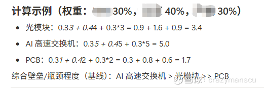 光模块和PCB板是已经被炒到天上的大牛股,用我们的模型比较交换机与光模块、PCB板的壁垒,结果交换机是最高的