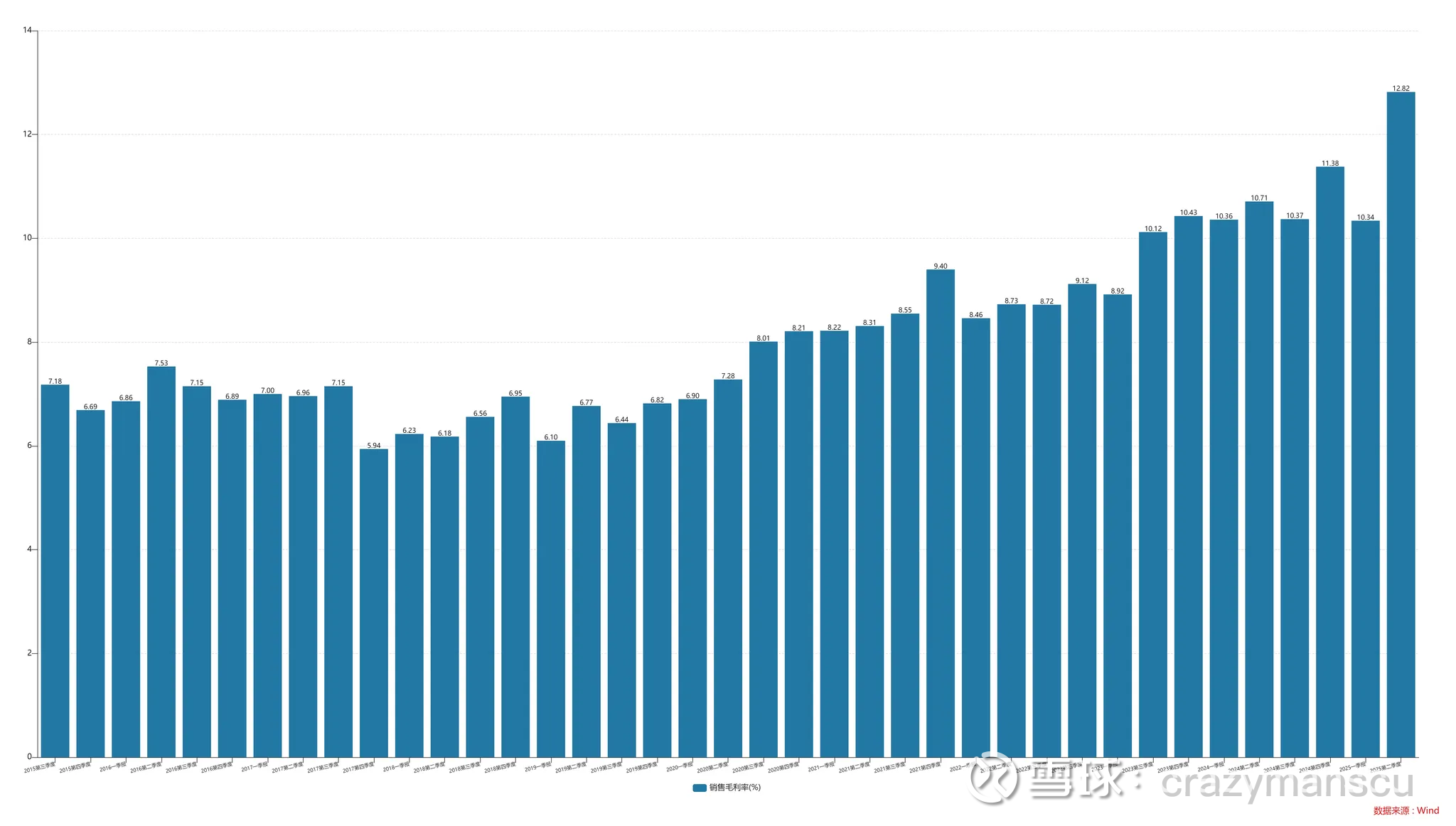 下面三张图是白盒交换机厂商天弘科技的单季度收入、毛利率和净利率。天弘科技2021年以来收入增长了一倍,股价已经上涨了10倍。天弘科技最新的毛利率是12.82%,净利率已经达到7.29%。说明,白牌交换机代工,因为是直销,费用率可以做到很低,毛利转化为净利润的转化率很高。