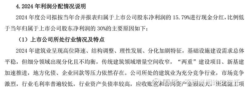 $中国中铁(SH601390)$ 中铁港股2024年每股派发股利0.195港币,相对于当前股价3.87港币,股息率5.04%左右。2024年年报后分红比例是15.79%。但是公司曾经有公告说明如下: