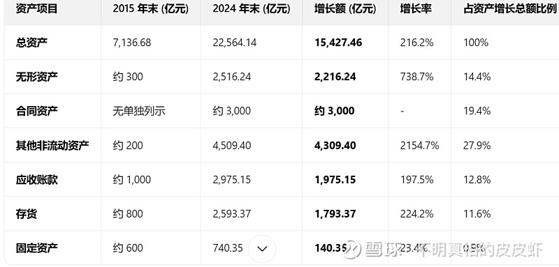 每年分红比例平均16%左右。也就是说,每年投入了很多钱,换取的是平均2.9%的收益增长。这个投资回报率确实挺差的。看下这些钱投入之后转换成了什么: