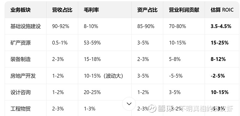 除了矿产资源、装备制造、设计咨询这些资本回报还可以之外,其他的基建、房地产开发、工程物贸,回报都很差。未来不知道公司能不能缩减这些低回报板块的投资。如果可以的话,公司承诺的分红比例30%或许能够实现。