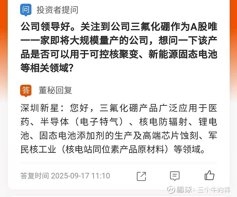 短期有止跌回升迹象,风险可控,逻辑尚可,没连板过,所以还未广泛发酵。A股唯一一家即将大规模量产三氟化硼的公司。