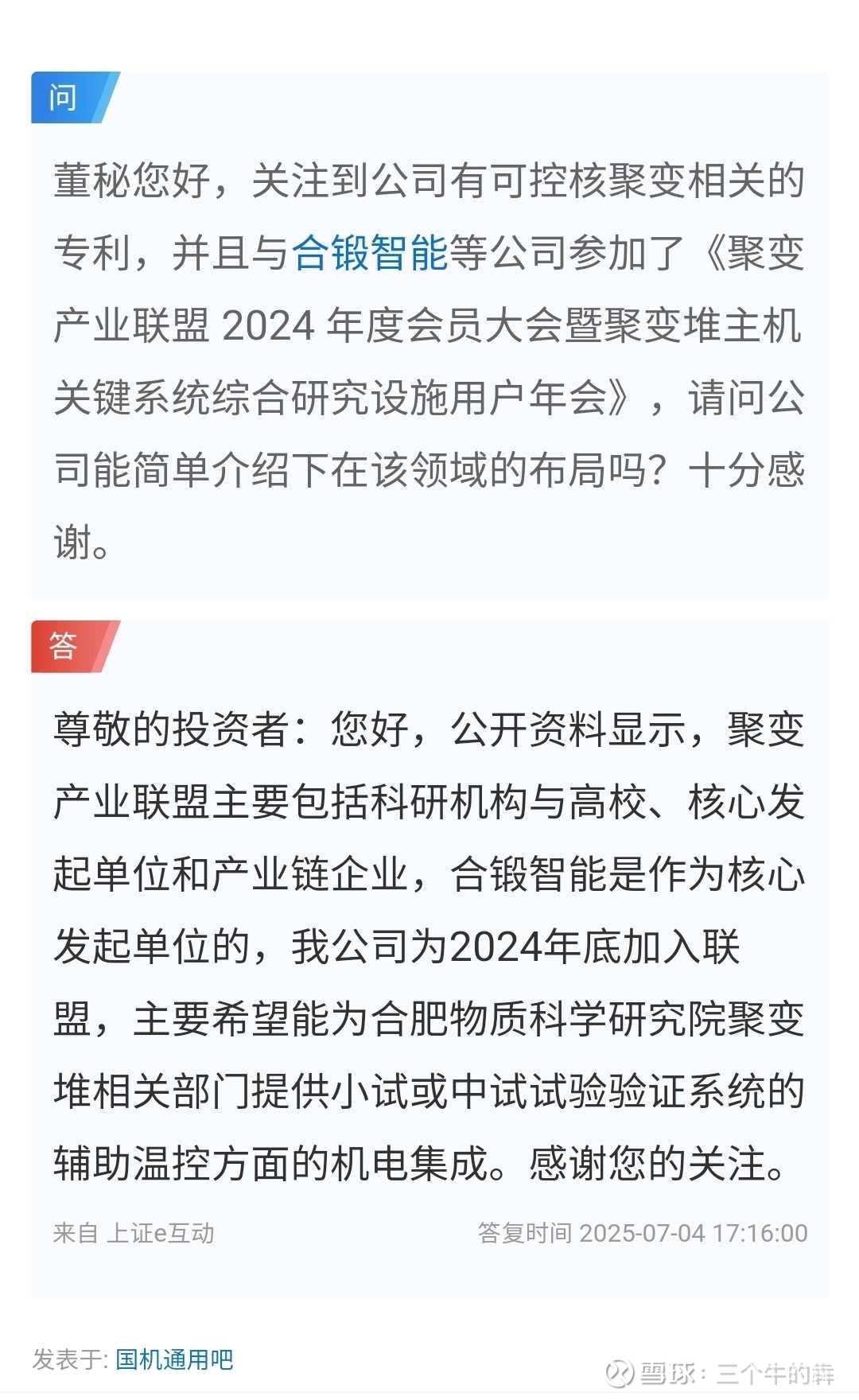 与中国人造太阳EAST同在合肥,属于核聚变产业联盟成员。