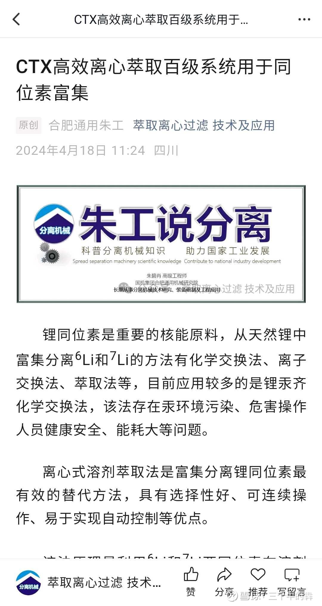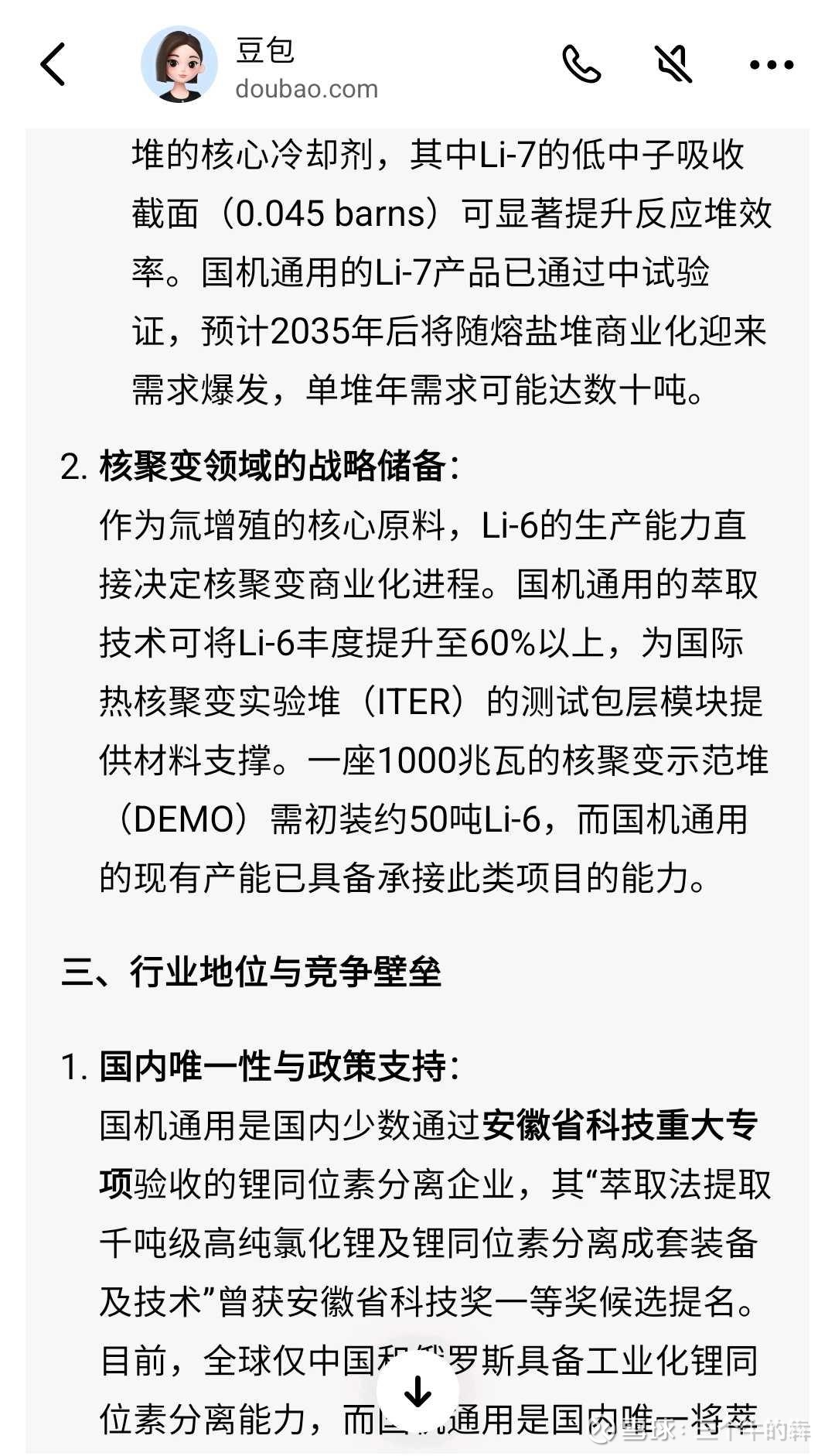 国机通用凭借多级逆流离心萃取技术,在锂同位素分离领域建立了显著的技术优势和市场地位,其产品已深度参与核电和核聚变产业链,是支撑国家核能战略的核心标的。其作为国内唯一规模化生产企业的稀缺性,使其在全球锂同位素竞争中占据不可替代的地位。未来,随着先进核能技术的商业化推进,国机通用有望迎来业绩爆发期。