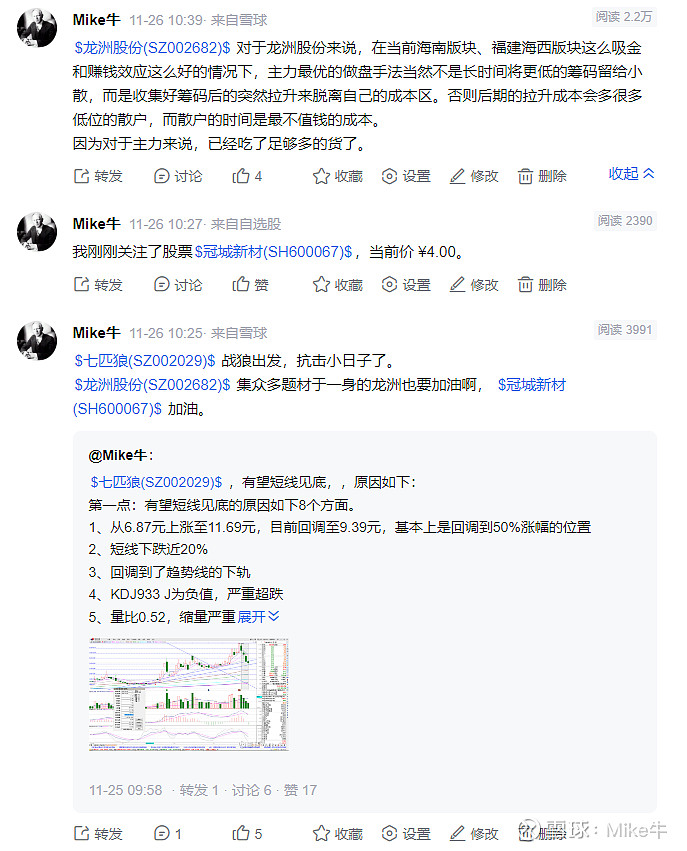 你看看 $龙洲股份(SZ002682)$ 自从2025-11-26 我发了以下帖子之后,龙洲股价已在9个交易日上涨了 60%了,并且还在巨量封涨停,极有可能翻倍啊