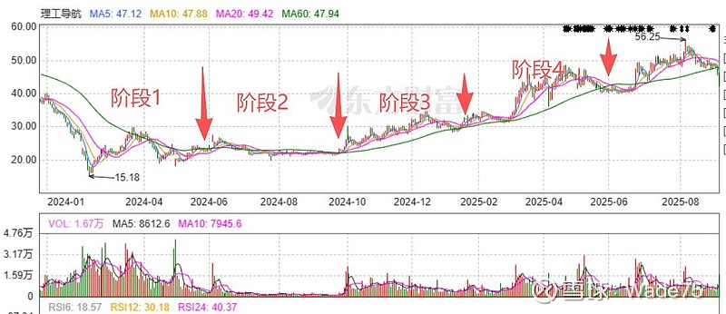 924行情仍是牛市起点,只是我更愿意称为二级市场增量开始,透过货币宽松、央行资金以互换便利再回购贷款投入和社保每年被动增持ETF的金融改革,实际上等同于金融市场的改革开放;924起到的作用是激活二级市场,在理工导航上明显看到成交量的倍增,在2024/10/8开盘涨停收大长阴的纪念碑之后,日均量达到2%换手,同时股价开始不断修复,在没有长线增量资金进驻的过程中,短线资金不断进来尝试价差交易,换手充分的过程将股价推高至崩跌前的35,此时抄底的回购股份和牛散正式确定获利。