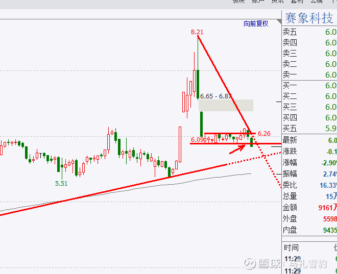 该股放量下跌后缩量整理形成了一个道斯轨选择向下突破,量能不足还需要确认,后续的走势可能出现继续下跌或者走出一个更复杂的中继形态,暂且根据道斯轨对待。注意上升趋势线的支撑作用。计划好应对策略。