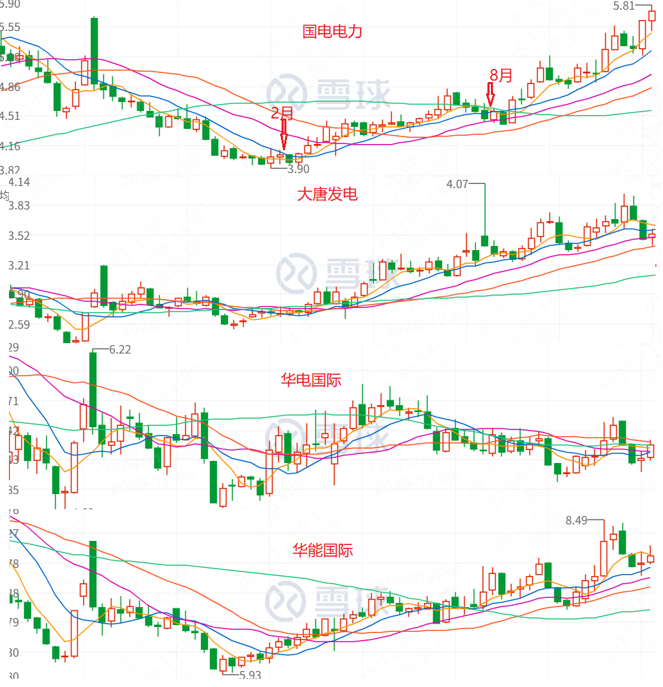 从后视镜来看, 长协比例高的国电, 最近股价相比其它几家强势. 一个重要因素应该就是它长协比例高, 利润稳定.