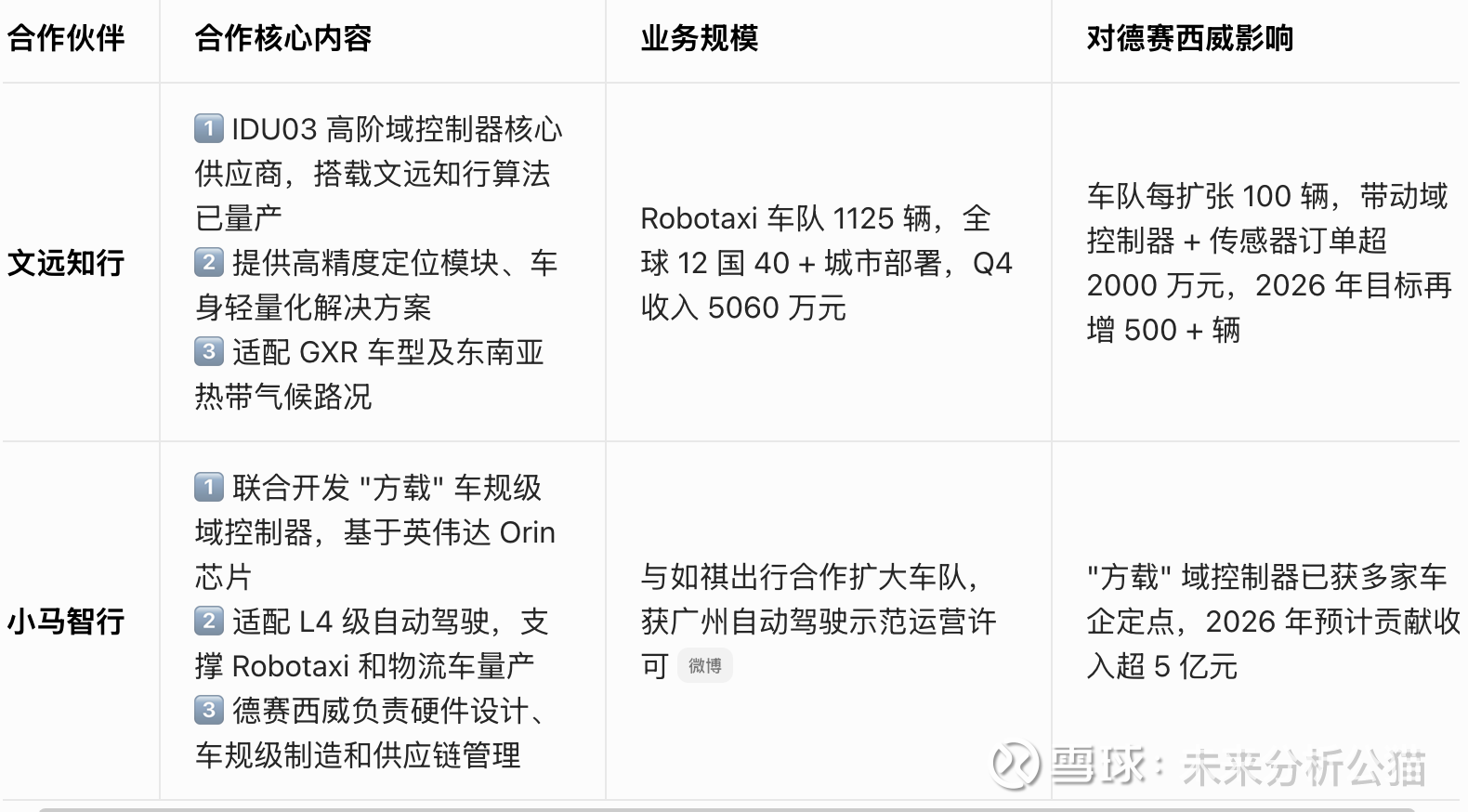 建议投资者重点关注德赛西威与文远知行、小马智行的合作进展,以及新车型量产带来的订单增量,这将是公司业绩超预期的关键驱动力。$德赛西威(SZ002920)$ $文远知行-W(00800)$ $小马智行-W(02026)$