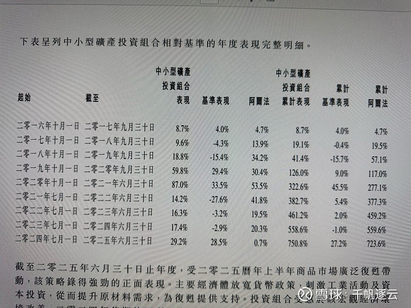 过去历年的矿业投资业绩,只能说爆炸。牛逼的点不在于赚了多少倍,而是年年稳定赚钱,甚至在 18 和 21 这种对标指数大跌的年份也赚钱。