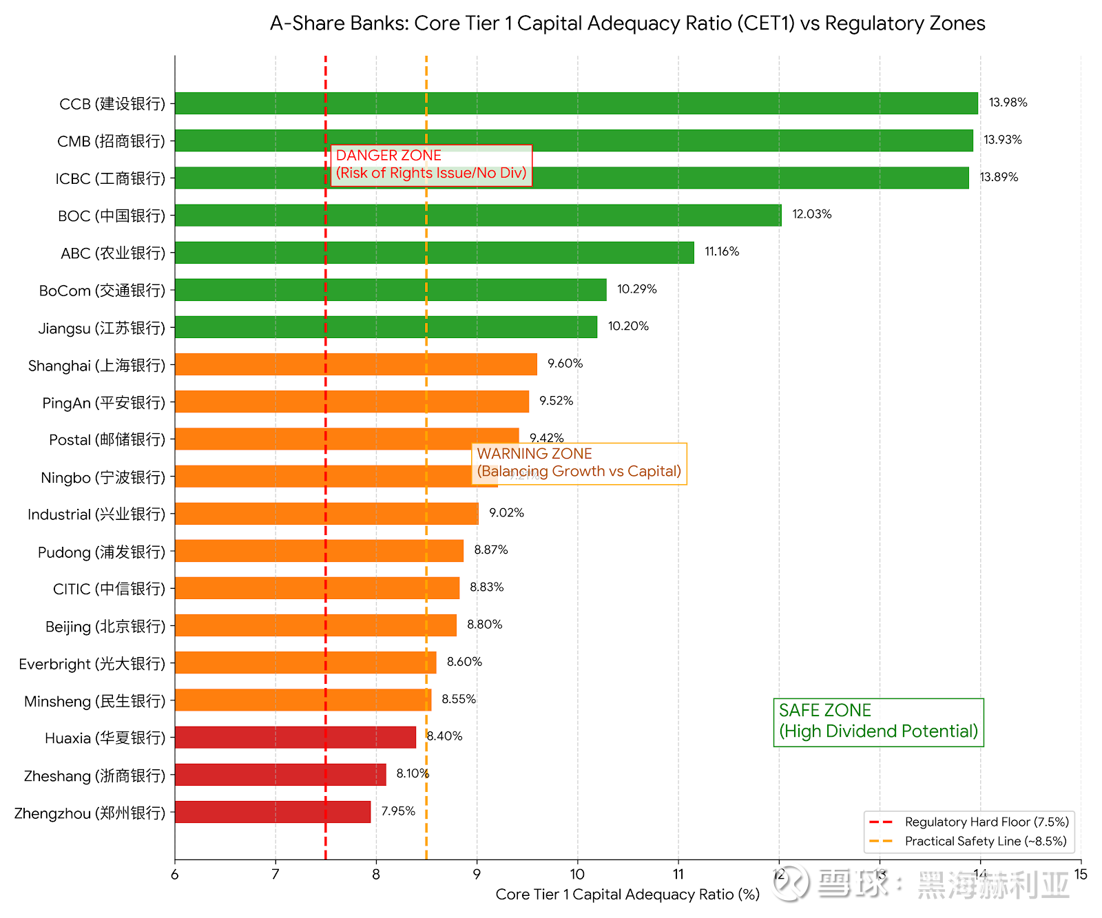 2. 橙区:走钢丝的“奋斗者” (8.5% < CET1 < 10.5%)