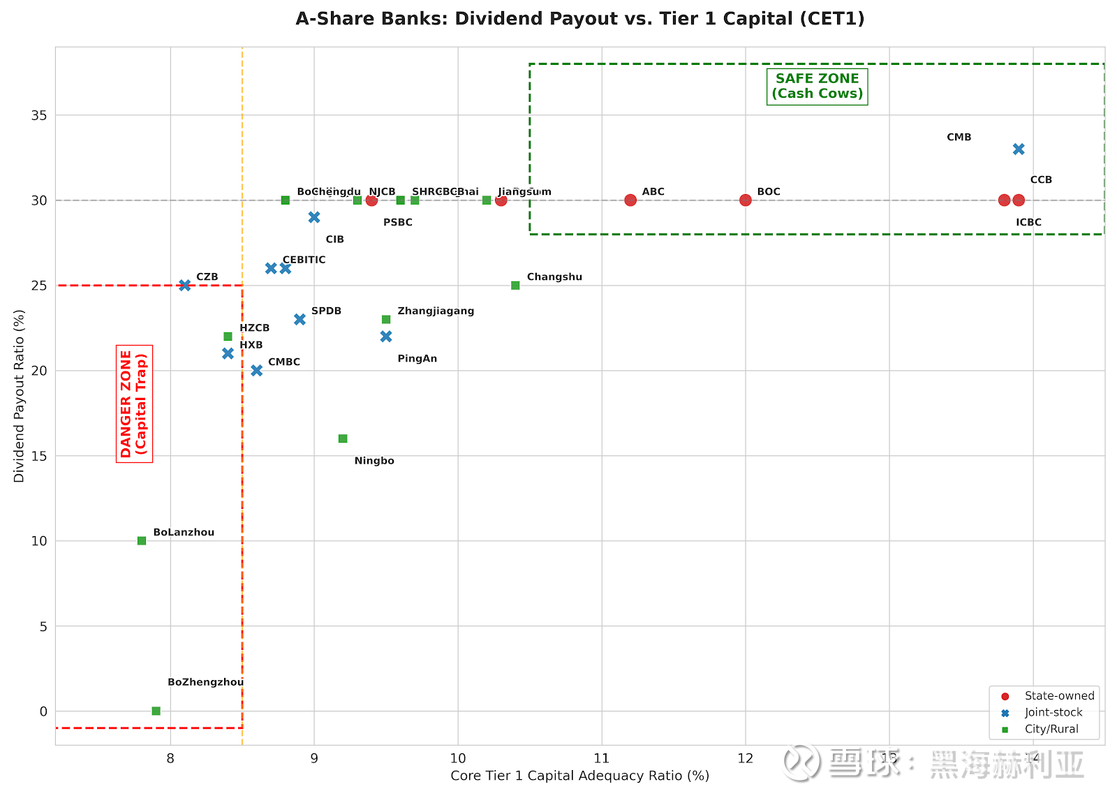 这张图非常有意思,它直接把银行股划分为三个“阶级”,看懂这张图,就看懂了银行管理层的内心戏。