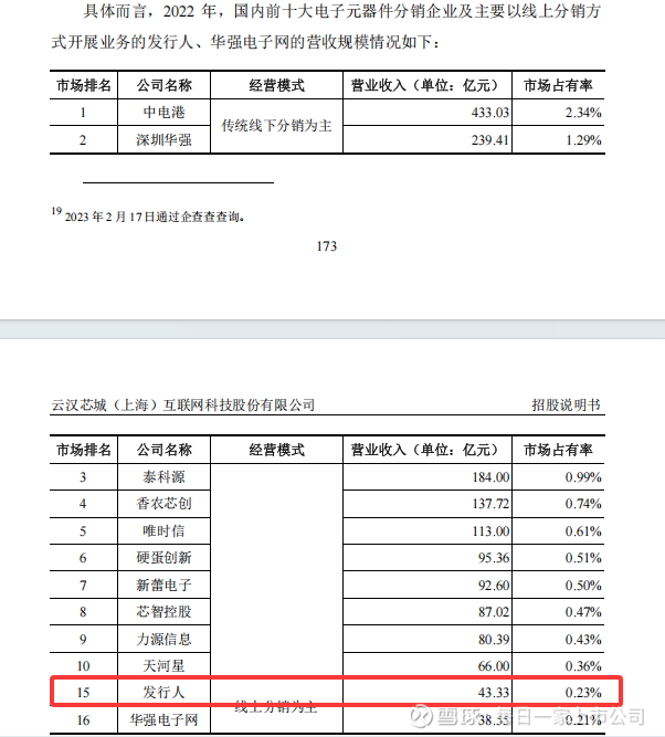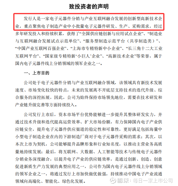 云汉芯城(上海)互联网科技股份有限公司成立于2008年5月,公司是一家电子元器件分销与产业互联网融合发展的创新型高新技术企业,重点聚焦电子制造产业中小批量电子元器件研发、生产、采购需求。公司通过有效运用数字技术和互联网技术,基于自建自营的云汉芯城B2B线上商城(网页链接),主要为电子制造产业提供高效、专业的电子元器件供应链一站式服务,并延伸至产品技术方案设计、PCBA 生产制造服务、电子工程师技术支持等在内的多个领域,子公司深圳汉云拥有 CNAS 认证的电子元器件检测实验室。