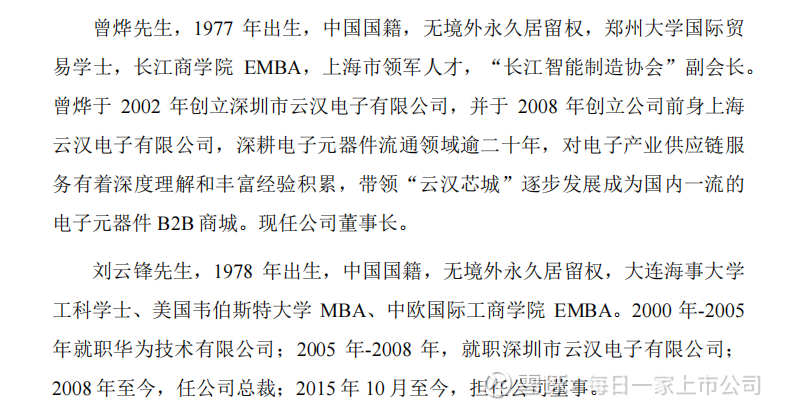 刘云锋(总裁):作为曾烨的大学同窗,刘云锋在2005年底应曾烨邀请加入创业团队。他更侧重于公司的内部运营、团队建设和战略执行,是将蓝图落地的关键人物(曾在华为电气(后并入艾默生)担任销售与管理岗位,负责电子元器件分销与客户服务。这段经历让他深度接触电子制造企业的采购需求,敏锐意识到传统元器件流通环节的痛点)。