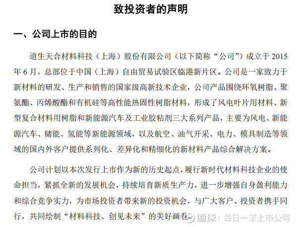 道生天合材料科技(上海)股份有限公司成立于2015年6月,总部位于中国(上海)自由贸易试验区临港新片区,是一家专注于高性能热固性树脂材料研发、生产与销售的国家级高新技术企业。公司从风电材料领域崛起,以“技术驱动+场景拓展”为核心战略,构建了覆盖风电、新能源汽车、储能等领域的材料解决方案体系。