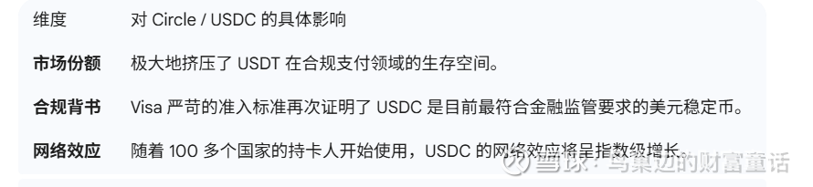 支付链条的闭环: 以前 USDC 更多用于链上借贷或储备,现在通过 Visa 卡,它实现了从存储 -> 跨境传输 -> 终端消费的完整闭环。