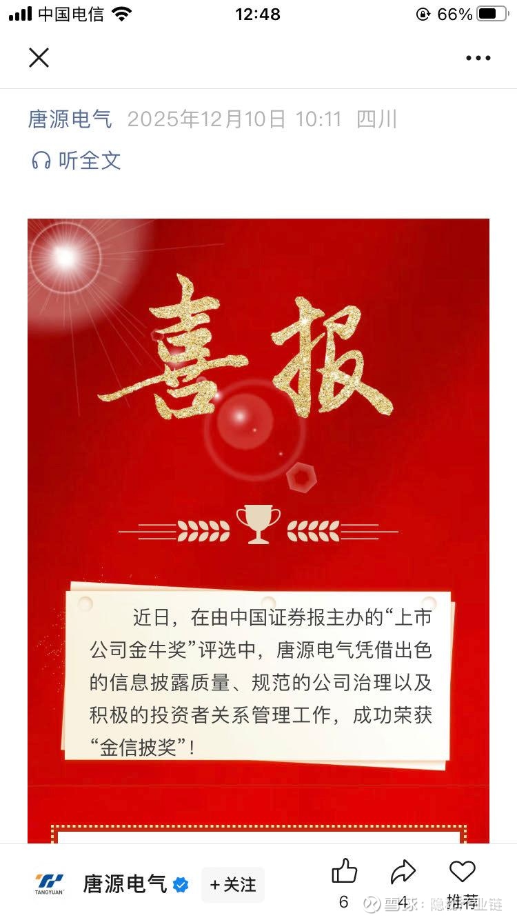 近日,唐源电气荣获中国证券报颁发的“金信披奖”,成为A股轨交智能运维领域信息披露质量的标杆企业。
