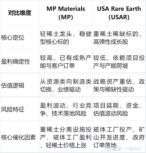 MP Materials(MP)与USA Rare Earth(USAR)就是这场运动中的核心,轻稀土vs.重稀土各管一摊。
