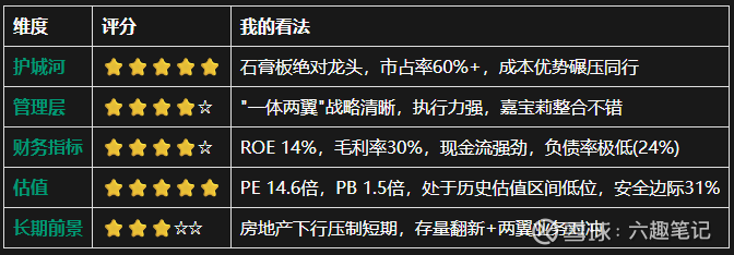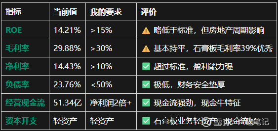 • ✅ 战略清晰: "一体两翼、全球布局"战略执行到位,从单一石膏板转型综合建材服务商