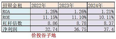 首先我们来看一下招银金租的综合指标,包括:ROA,ROE,杠杆倍数和净利润,如下表1所示: