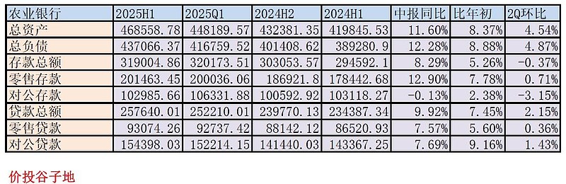 2025年中报显示,总资产46.86万亿,同比去年同期增长11.6%。其中贷款总额25.76万亿,同比去年同期增长9.92%。总负债43.71万亿同比去年同期增速12.28%。其中存款总额31.9万亿,同比增速8.29%。更多的数据请参考表3: