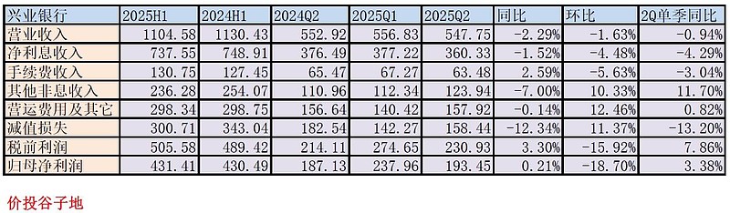 兴业银行2025年中报营收整体表现平稳,净息差同比降幅逐渐收窄了,带动净利息收入基本稳定。手续费收入表现良好,特别是财富管理和托管业务手续费录得同比正增长。负债结构持续优化,存款增长高于总负债增长,背后是兴业银行这两年来持续推进客群建设取得的成果。