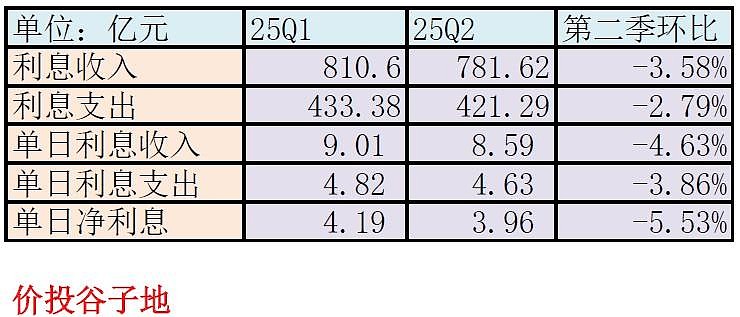 可以看到今年二季度单日利息收入环比下降了4.63%,利息支出环比下降了3.86%,净利息收入环比下降了5.53%。