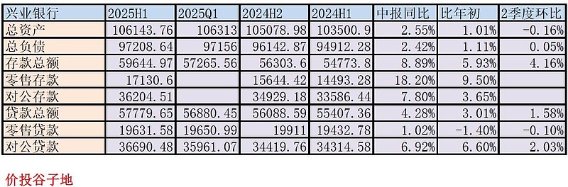 我们假设兴业银行的资产变化在季度内是线性的,生息资产和总资产的比例保持稳定,那么生息资产的环比变化=(25年中报总资产+25年一季报报总资产)/(25年1季报总资产+24年年报总资产)-1=0.5%。