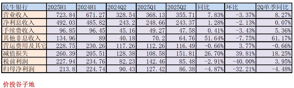 民生银行的营收增长主要受益于债券牛市带来的其他非息收入同比大幅增长。但是,民生银行并没有将营收的增长转化为净利润的增长,而是加大了信用减值计提的力度。对此,个人理解是为了应对今年上半年不良生成的反弹,算是一种补课行为。相比于民生银行在不良认定和风险抵补上欠缺的课,多提这些减值只能算是杯水车薪。