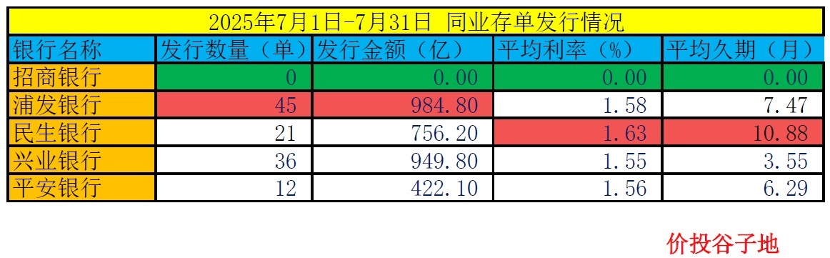 2,本月五家银行除了招行保持0发行外其他四家银行都发行了同业存单。加权久期最短的是招行0个月,最长的是平安银行10.47个月。
