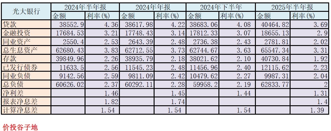 接下来我们再看一下环比数据。我根据之前对光大银行一季度净息差的估算,带入净息差还原表格可以推算出单个季度净息差明细,如下表3所示: