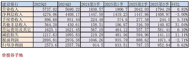 建行的三季报营收数据和我之前写的《建行2025年三季报业绩预测》相比,净利润增速比我预测的高0.02%,基本算是完全命中。