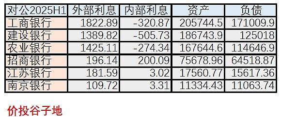 看完净利息收入的总趋势,下面我们来看一下各家银行内部和外部净利息收入的明细,如下表6所示: