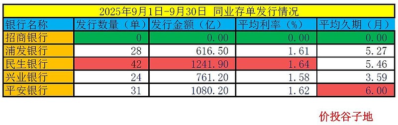 2,本月五家银行除了招行保持0发行外其他四家银行都发行了同业存单。加权久期最短的是招行0个月,最长的是民生银行9.29个月。各家银行的加权久期有所增加。