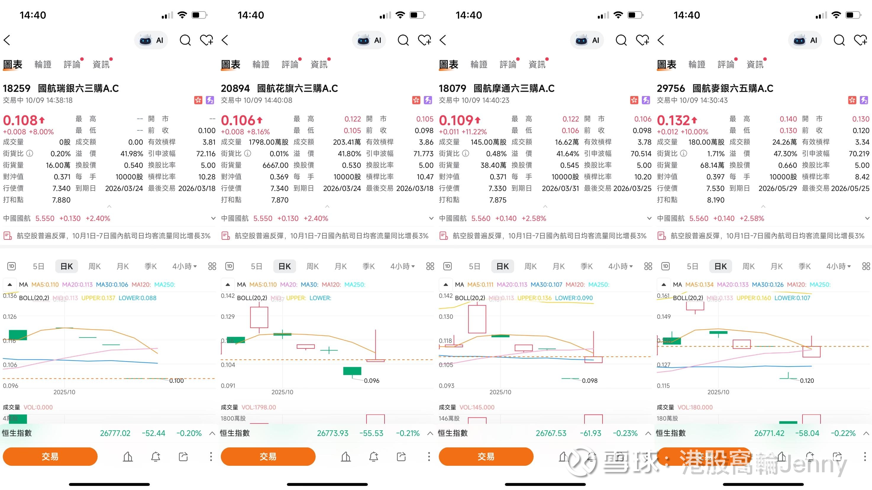 綜合分析,國航短線技術面呈現偏多格局,歡迎分享您對國航後市走勢的看法與交易策略,讓我們共同探討市場機會。若想獲取更多港股窩輪的深度分析與市場解讀,歡迎關注港股窩輪Jenny帳號。