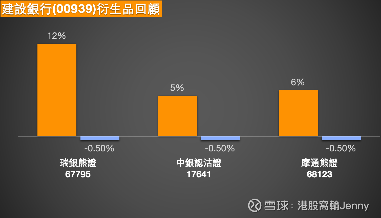 回顧2月27日提及的建設銀行窩輪產品,其後兩日表現印證了淡倉產品的吸引力。瑞銀熊證(67795)在提及後兩日錄得12%升幅,同期正股下跌0.50%;摩通熊證(68123)錄得6%升幅;中銀認沽證(17641)錄得5%升幅。