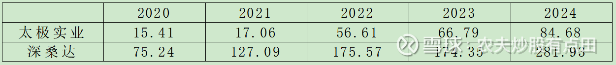 在产业服务板块,深桑达和太极实业增长空间均有限,其估值也相对简单,农夫用自由现金流折现法来估算其市值(简单粗暴一下,用净利润代替自由现金流)。深桑达2024年产业服务净利润为16.45亿元,按照持股比例51%对应净利润为8.39亿,折现率为12%,五年增长率为5%,永续增长率为2%,其价值约为92亿元,即10倍PE。太极实业2024年产业服务净利润为5.77亿,折现率为12%,五年增长率为10%,永续增长率为3%,其价值约为70亿,约为13PE。需要注意的是,这种方法依赖于对企业未来现金流的预测,且年增长、永续增长或折现率假设的细微变化,都会导致计算结果差距巨大。因而,该方法主要是一种选择企业原则和大致估算方法,无须也不可能寻求精确估值。另外,太极实业持有中国系统旗下子公司第二建设有限公司14.2%股份,持有第四建设有限公司20%股份,而第二、第四建设公司在2024年创造的利润分别为8.19亿和8.26亿元。农夫认为,打不过就加入,也可以分享成长嘛,侧面也印证了中国系统在产业服务领域的竞争力。我们再翻看一下深桑达的合并利润表。